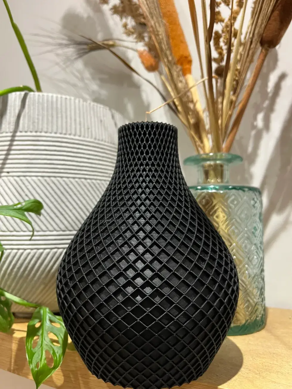 Reimagine texture with the Prismiq Vase. Its intricate diamond mesh pattern lends a tactile depth and futuristic aesthetic, all realized with precision 3D printing. Customers adore the interplay of shadows and highlights, making Prismiq a go-to for bold, modern spaces.